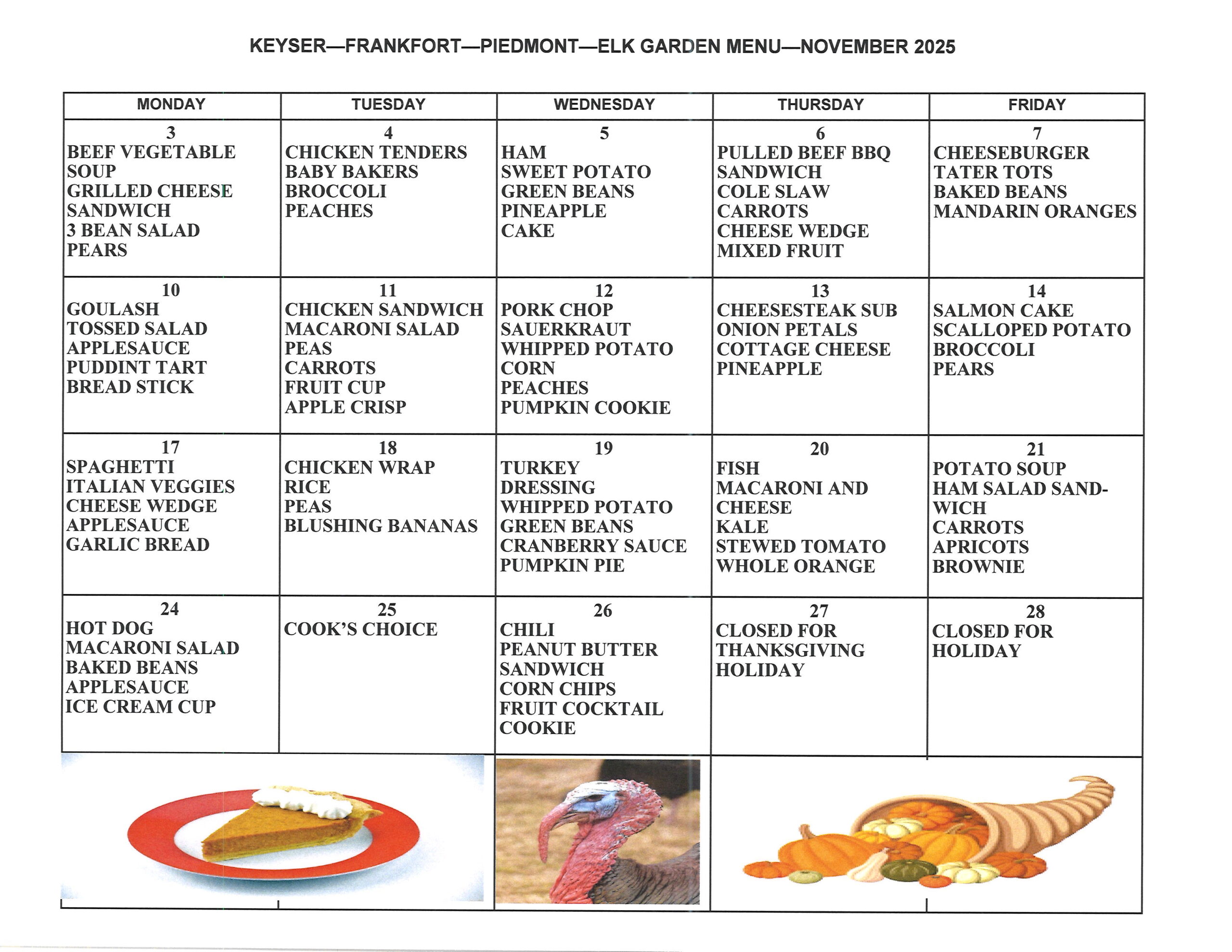 Monthly Menu
