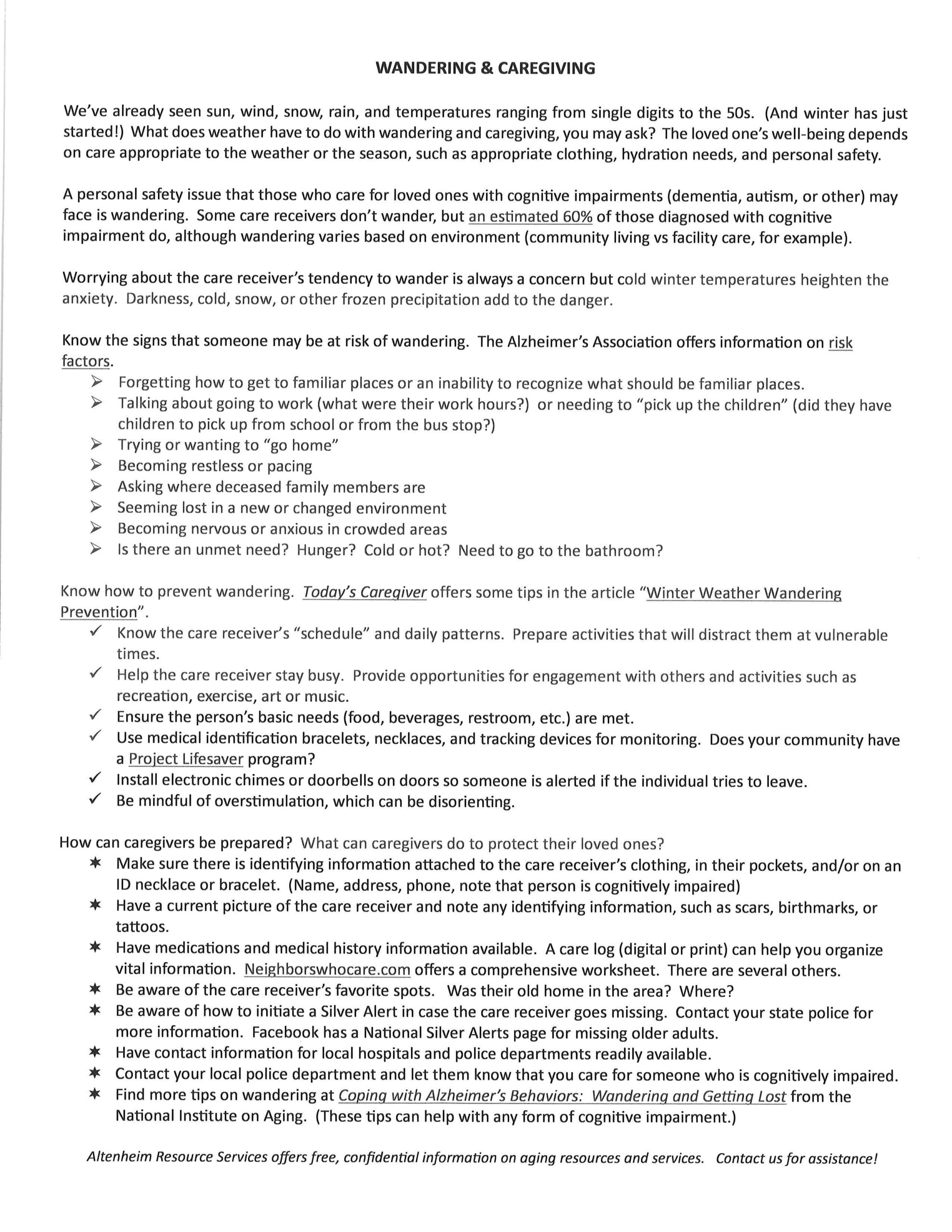 Worrying about your loved one wandering is always a concern, but cold winter temperatures heighten the anxiety.