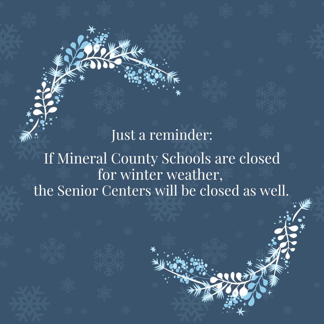 If Mineral County Schools are closed, then the Senior Centers will be closed as well.